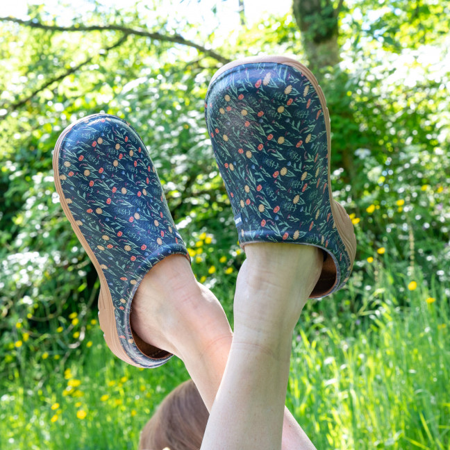 Mit ihren leuchtenden Farben und blumigen Mustern bringt die Linie Judy einen Hauch von Retro-Optimismus in den Garten. Eine Kollektion, die für entspannte Momente unter freiem Himmel geschaffen wurde – zwischen Sonne, Licht, Natur und einem Lächeln. Die Judy-Gartenclogs bestehen aus EVA-Kunststoff – ultraleicht und bequem für den Alltag. Schnell hineinschlüpfen und los geht’s – zum Gießen, Ernten oder einfach zum Genießen. Die profilierte Sohle sorgt für sicheren Stand und hohen Tragekomfort. Lass uns das freie und fröhliche Lebensgefühl vergangener Zeiten wiederentdecken!