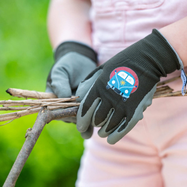 Mit den ROAD TRIP-Handschuhen können Kinder nach Herzenslust im Garten buddeln oder zu Hause werkeln – ganz ohne schmutzige Hände. Aus Polyamid gefertigt und mit weichem Schaumlatex beschichtet, sind sie besonders flexibel und ermöglichen präzise Bewegungen bei jeder Aktivität. Der kleine, bunte Patch aus der Feder der Blackfox-Designer bringt eine spielerische Note ins Spiel und macht Lust, bei den Großen mitzumachen. Ideal, um das Gärtnern zu entdecken und gemeinsame Momente an der frischen Luft zu erleben. Na, ziehen wir die Handschuhe an und stürzen uns ins Abenteuer?