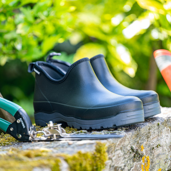 A small modern look, and surprisingly light... These "Oregon" shoes offer new sensations to all gardeners and DIYers, whether they are novices or experts. Why are they so light? Simply because we chose synthetic rubber (EVA-based), a material known for its light weight. Summer and winter alike, these shoes are an essential part of any gardener's wardrobe. In fact, in addition to being waterproof from the sole to the ankle, we have lined these shoes with neoprene, a material that insulates against both cold and heat.