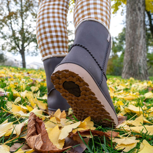 Dehors, le nez au vent, on se parle, on raconte, on transmet. Des instants tout simples qui rapprochent et redonnent le goût de faire des choses ensemble. Dans le parc d'à côté ou en balade dans les montagnes enneigées, les bottes "Cheyennetoo", avec leur look si tendance, vont forcément vous surprendre... Pour commencer, parlons un peu des matières. Pour l'extérieur des bottes, nous avons choisi le caoutchouc synthétique (SEBS), une matière imperméable, résistante et souple, sans phtalate et sans chlore. Pour l'intérieur, une fourrure intégrale en polyester tellement douillette et chaude, a pris place pour prendre soin des petits pieds. Le tout fabriqué en Europe... Bref, avec leur aspect en cuir/daim à vous y méprendre, les bottes "Cheyennetoo" sont pourtant totalement imperméables et déclinées pour toute la famille ! En voilà de bonnes raisons pour sauter dans les flaques et dans la neige fraîche avec les gens que vous aimez...
