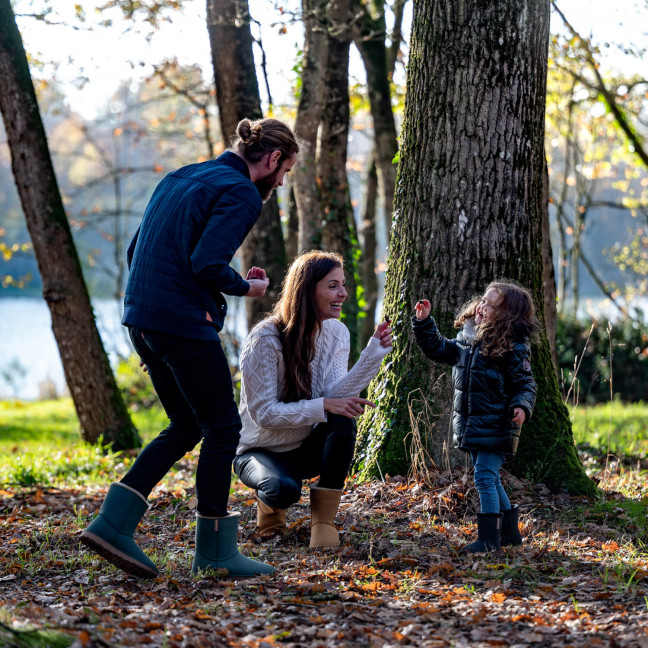 Dehors, le nez au vent, on se parle, on raconte, on transmet. Des instants tout simples qui rapprochent et redonnent le goût de faire des choses ensemble. Dans le parc d'à côté ou en balade dans les montagnes enneigées, les bottes "Cheyennetoo", avec leur look si tendance, vont forcément vous surprendre... Pour commencer, parlons un peu des matières. Pour l'extérieur des bottes, nous avons choisi le caoutchouc synthétique (SEBS), une matière imperméable, résistante et souple, sans phtalate et sans chlore. Pour l'intérieur, une fourrure intégrale en polyester tellement douillette et chaude, a pris place pour prendre soin des petits pieds. Le tout fabriqué en Europe... Bref, avec leur aspect en cuir/daim à vous y méprendre, les bottes "Cheyennetoo" sont pourtant totalement imperméables et déclinées pour toute la famille ! En voilà de bonnes raisons pour sauter dans les flaques et dans la neige fraîche avec les gens que vous aimez...