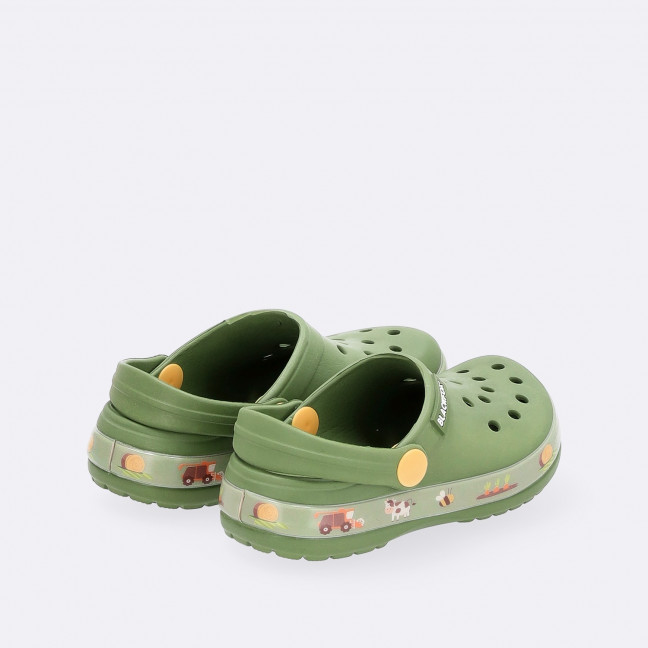 Avec cette joyeuse basse-cour où se côtoient poules, oies et tracteurs, on plante avec gaieté radis et fraises dans le potager ! Fabriqués à partir de caoutchouc synthétique (EVA), ultra légers et pratiques, les sabots KANSAS sont parfaits pour toutes les activités, à l’intérieur comme à l’extérieur. Facile à enfiler et dotés d’une bride pour un maintien optimal, ils accompagnent les enfants dans leurs jeux et leurs explorations. En plus, leur nettoyage est un jeu d'enfant ! Alors, prêts à chausser la bonne humeur ?