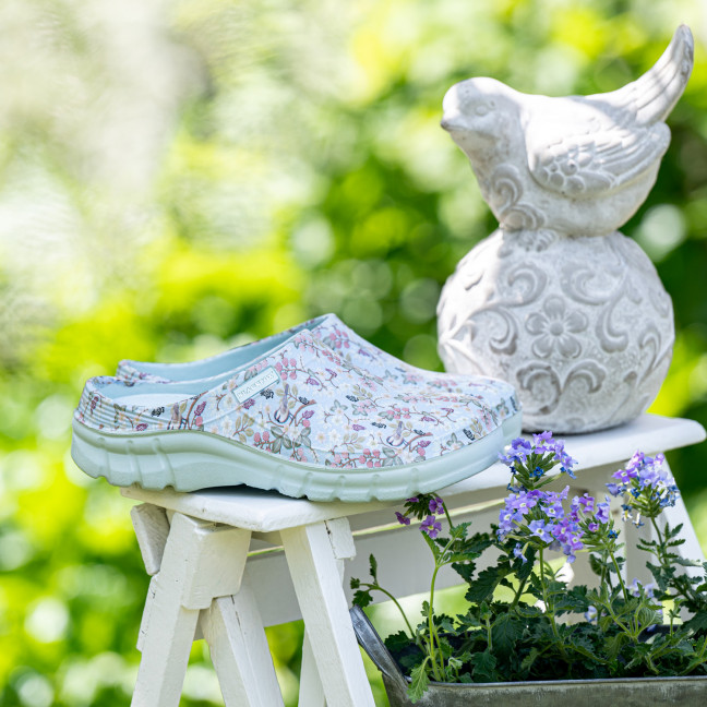 Si jolis ces "Lily"... À vous la cueillette dans le potager ou la balade au marché tout en légèreté ! En effet, pour ce modèle nous avons opté pour du caoutchouc synthétique à base d'EVA, vous permettant de porter des sabots imperméables, très légers, confortables et résistants, parfaits pour les activités de jardinage ou les moments de détente dans votre petit coin de verdure ! Question entretien, on vous facilite la tâche puisque les sabots Lily sont faciles à laver, notamment avec leurs semelles intérieures amovibles. Des motifs tendance et délicats, un petit rebord à l’arrière du talon et une forme adaptée au pied large... Décidément ces sabots "Lily" ont tout pour plaire !