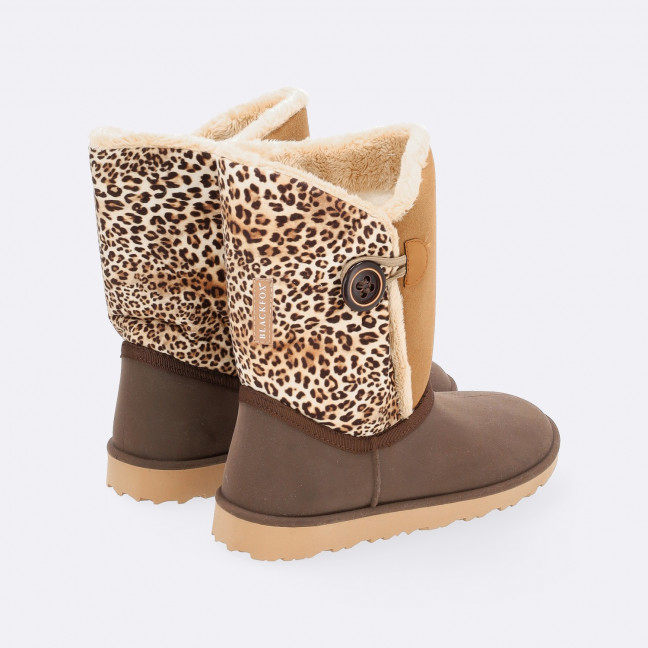 Avec leur look tendance, les nouvelles bottes "Karkwa" tout droit sorties de l'imagination du designer Blackfox, sont parfaites pour les balades hivernales ! Les pieds bien au chaud, le moment est venu de s'évader du quotidien et de profiter tout simplement de la nature qui nous entoure... Et ce n'est pas la pluie qui va nous arrêter ! En efftet, avec la tige basse en caoutchouc synthétique (SEBS), une matière imperméable, souple et résistante, sans phtalate, sans chlore, l'eau ne passera pas ! La tige haute quant à elle, fabriquée à partir de polyester, se dote d'une texture 'polaire' pour une douceur et un réconfort assurés. Nous avons également doublé intégralement les bottes "Karkwa" avec une fourrure en polyester pour garder les pieds bien au chaud. Question look, le motif animal intemporel et le bouton décoratif donnent sans contest un style tendance et affirmé. Ce modèle est fabriqué en Europe et brossé main (en bas de tige) pour un effet cuir/daim à vous y méprendre !